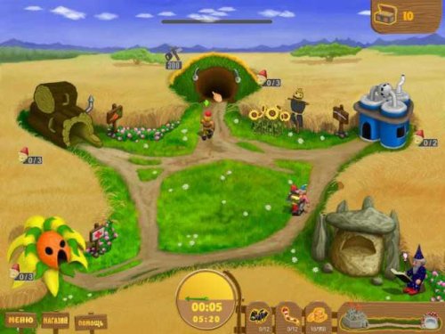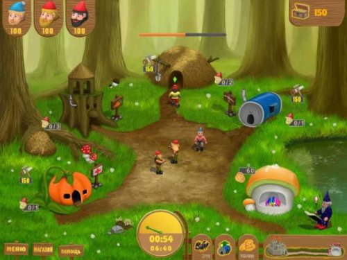 Увлекательный симулятор "Веселые гномы" - отличное развлечение для всей семьи. Вы играете за команду гномов. Они должны найти большой алмаз, но не знают точно, где его искать. Поэтому для начала они ищут его в шахте. Направляйте их работать в шахту, иначе, в силу своей природной лени, они будут просто бродить по игровому полю. Работая в шахте, гномы будут добывать драгоценные камни, которые можно продать. Также гномы периодически ломают инструменты, болеют и хотят есть. Для этого их нужно посылать в соответствующие здания. Иногда на игровом поле появляются вредители. Мышь ворует из шахты алмазы, а змея кусает гномов и они заболевают. По ним нужно кликать мышкой, чтобы маг, сидящий неподалеку, заклинанием изгнал вредителя с поля.